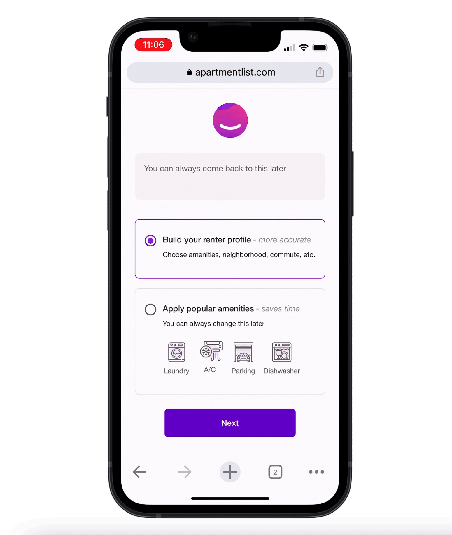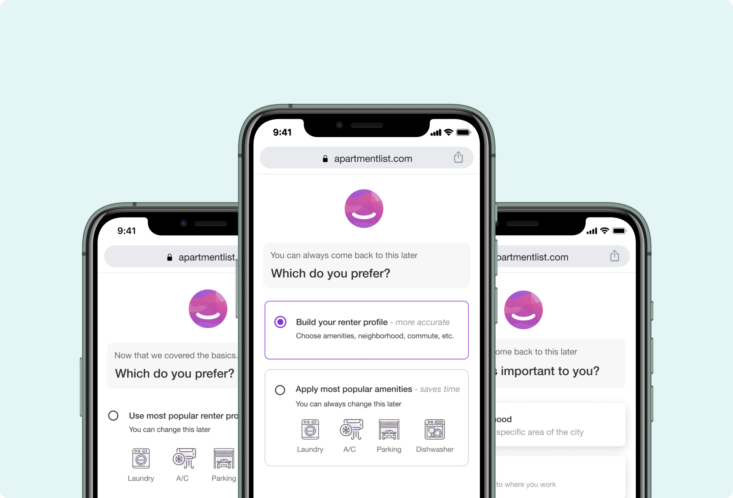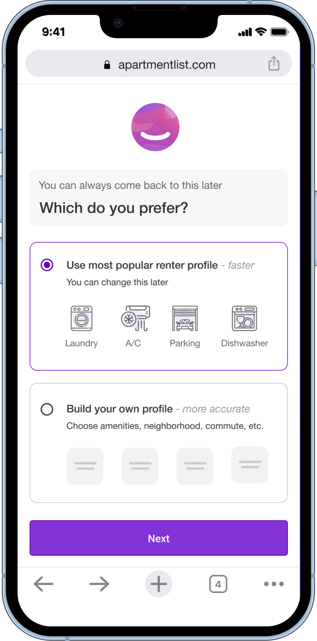 The quiz experience remains unchanged for renters who choose to build a profile