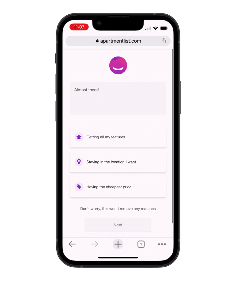Spontaneous users have an βescape hatchβ that will allow them to skip to their matches and browse apartments faster